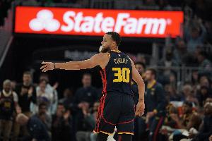 勇士当家球星库里本场比赛靠着自己的牵制力让队友早早打出状态,虽然自己出手不多,但还是帮助球队收获一场大胜。