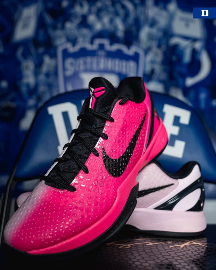 1月9日讯 此前杜克大学女篮官方社媒曾晒出一款新推出的Kobe 6 Protro “Kay Yow(抗乳腺癌配色)”2.0。