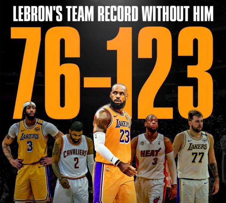 而在这199场比赛中,他所在的球队战绩仅为76胜123负,胜率仅为38.2%。