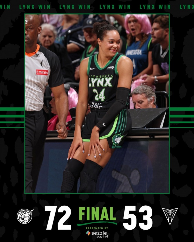 明尼苏达山猫今天72比53击败金州女武神,最终她们的战绩定格在34胜10负,联盟第一。